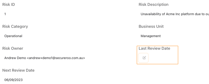 5. This will automatically open the Risk in a new widow. Hover over the field you want to modify. Click on edit (the pen icon) that appears (as shown below).
