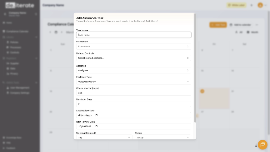 Learn how to quickly add a new task to your compliance calendar. This guide will walk you through the simple steps to ensure all your compliance tasks are logged efficiently.
