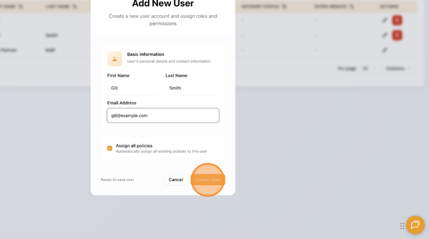 - Click "Create User".