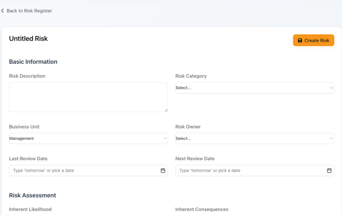 To learn more about these fields, visit the 'Risk Register Form Fields Explained' help article.