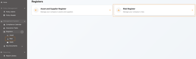 4. From there, click on ‘Risk Register’ in the centre of the screen.