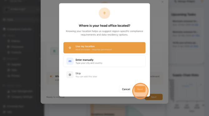 - Select location option, then Click "Next"