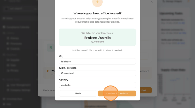 - Once location is correct, Click "Confirm & Continue"