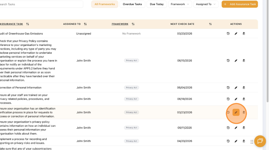 - Select the Task you want to delete. Click the pencil icon.