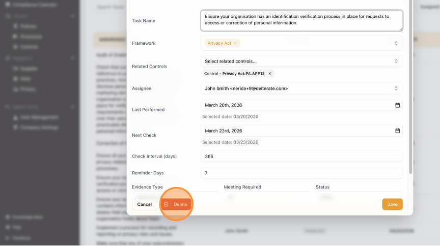 How to Delete a Task in the Compliance Calendar