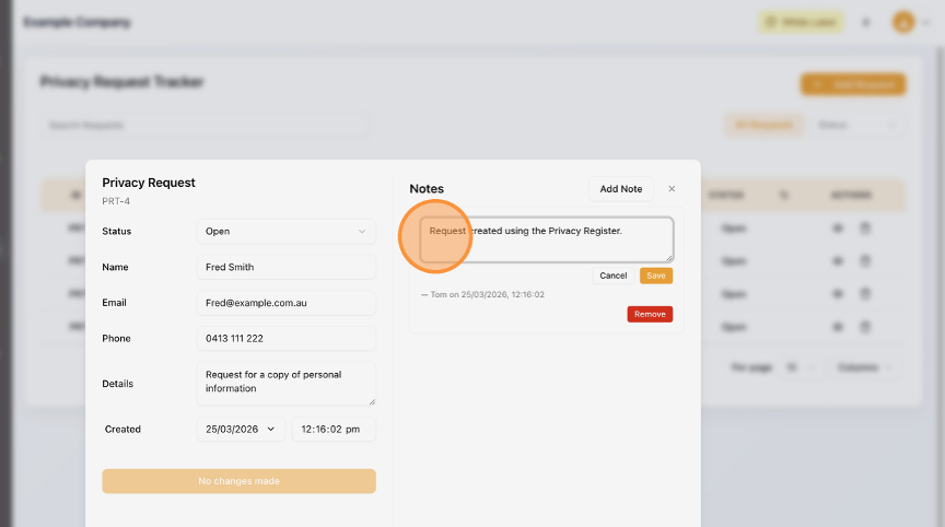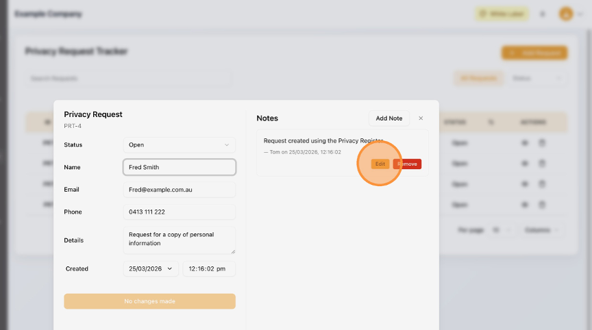 How to Edit a Privacy Request in the Privacy Request Tracker