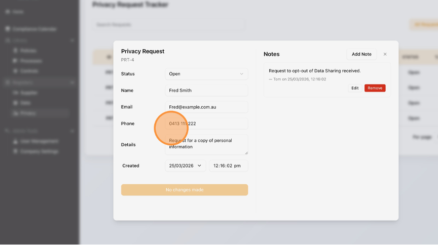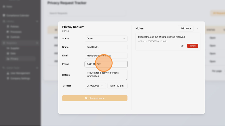 Learn how to Edit a Privacy Request in the platform. This guide will walk you through the necessary steps to manage your Privacy Requests in the Tracker.